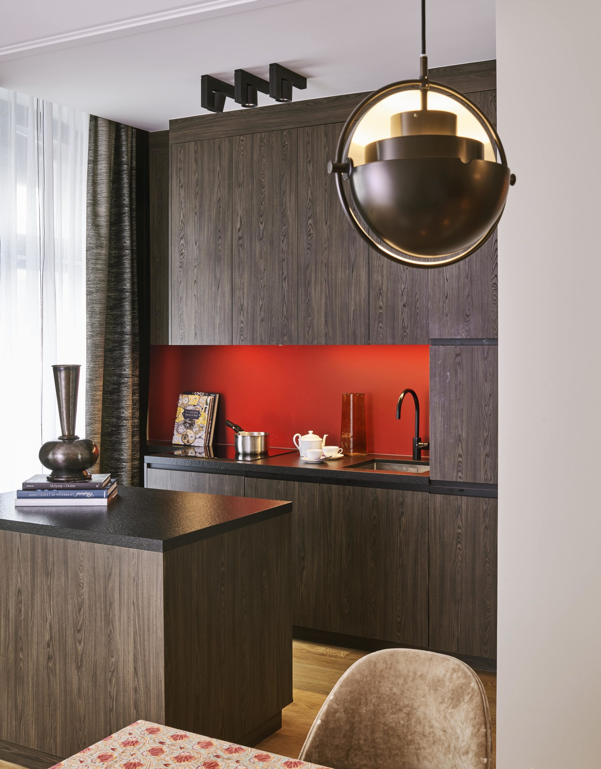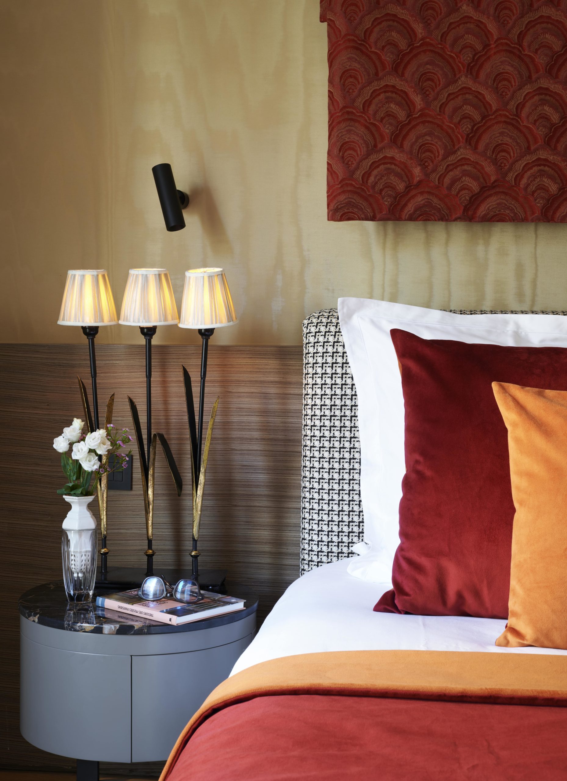 Un appartement de 75 m² / 807 Sq.ft. raffiné aux tonalités chaudes et à la décoration inspirée du théâtre parisien du début du XXe siècle, en hommage au célèbre dramaturge Sacha Guitry. Doté d'un salon confortable, d'une cuisine ouverte équipée, d'une chambre élégante et d'une terrasse de 12 m²/129 Sq.ft. donnant sur la cour intérieure arborée, cet appartement combine le charme de l'ancien et le confort contemporain.